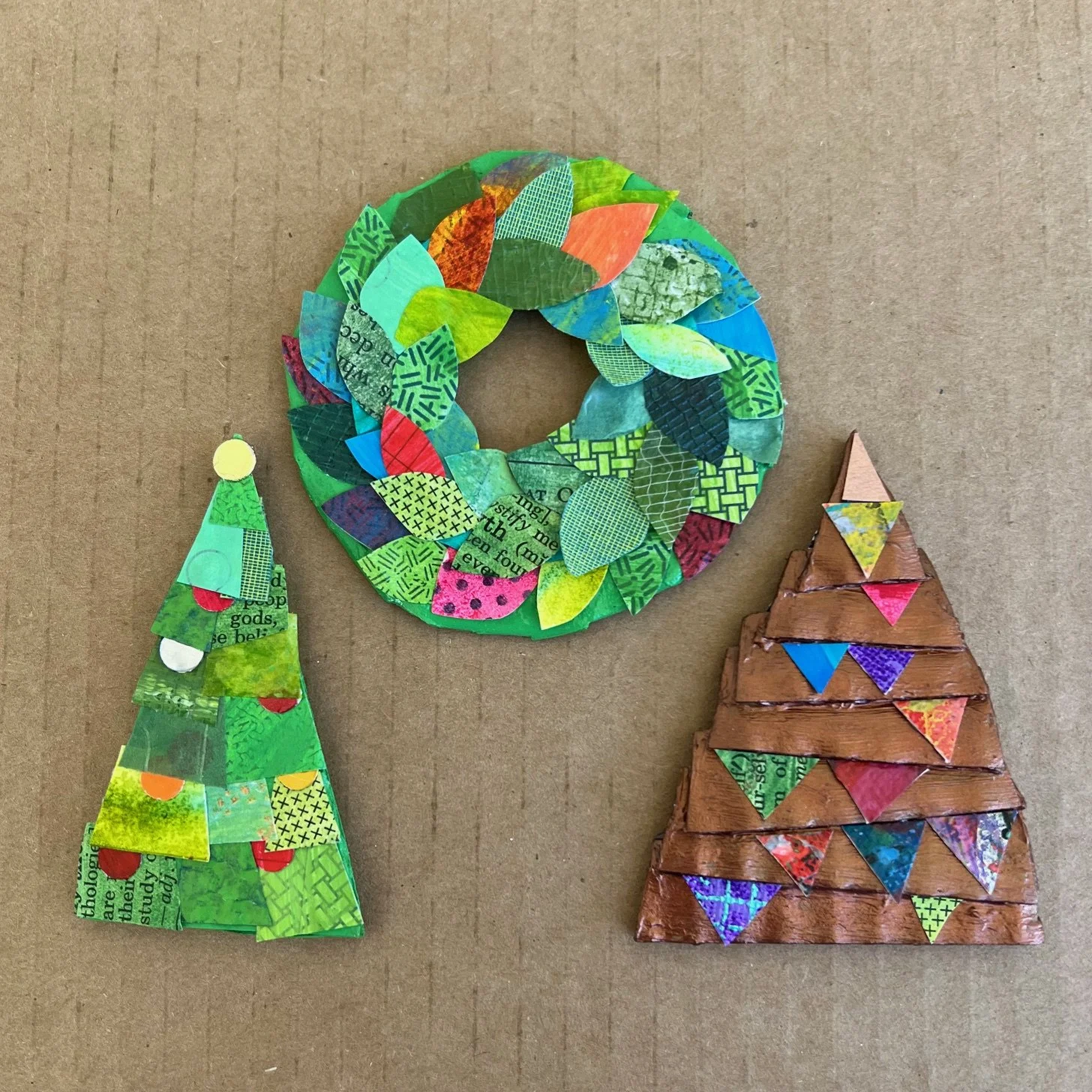 Show your holiday spirit with artsy pins that radiate your personal style! We will use a variety of papers, cardboard, odds and ends to create festive holiday brooches in this fun and creative class. Bring papers, sequins, buttons, gift boxes, interesting packaging scraps...anything that can be cut or glued to reflect your personal flair. We will provide glue, pin backs, paints and equipment. We will have some papers to share, too.