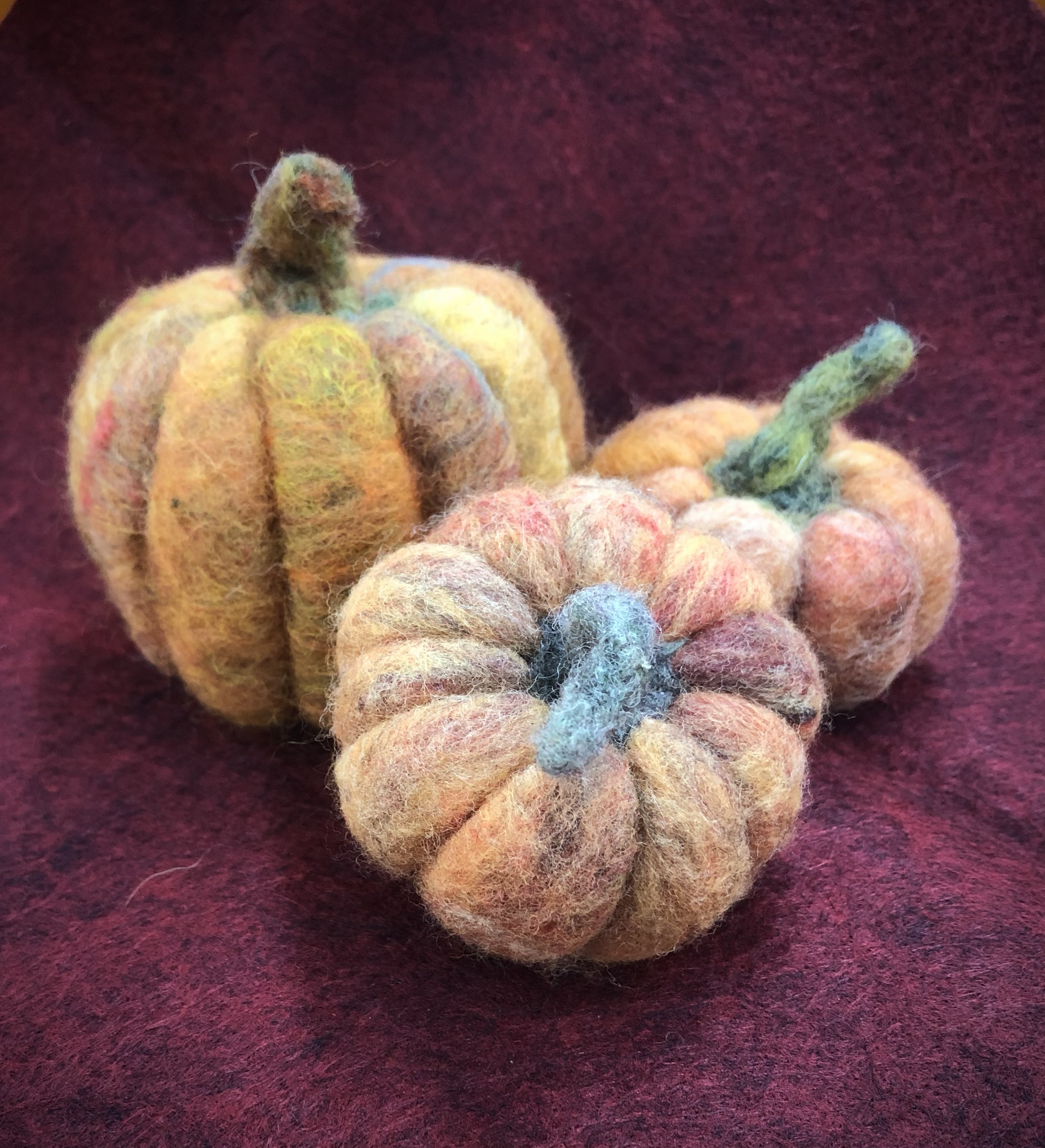 Starting with a solid core foundation, you’ll learn the art of color blending wool roving with mini hand carders to create custom mini rolags, giving your pumpkins a natural, multi-tonal look. Needle felting is as relaxing as it is addictive. Come sculpt, chat, and leave with a harvest of your own making!