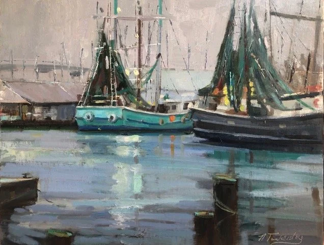 Active in the current plein air movement, and a founder of Plein Air Easton, she travels worldwide participating in competitions, judging and teaching. Most recently, she was the Featured Artist at the 49th Annual Waterfowl Exhibit and Festival. The working watermen of the Chesapeake Bay provide a perfect of blend of humans at work in a gorgeous landscape, and have provided the artist with rich subject matter for the past decade.