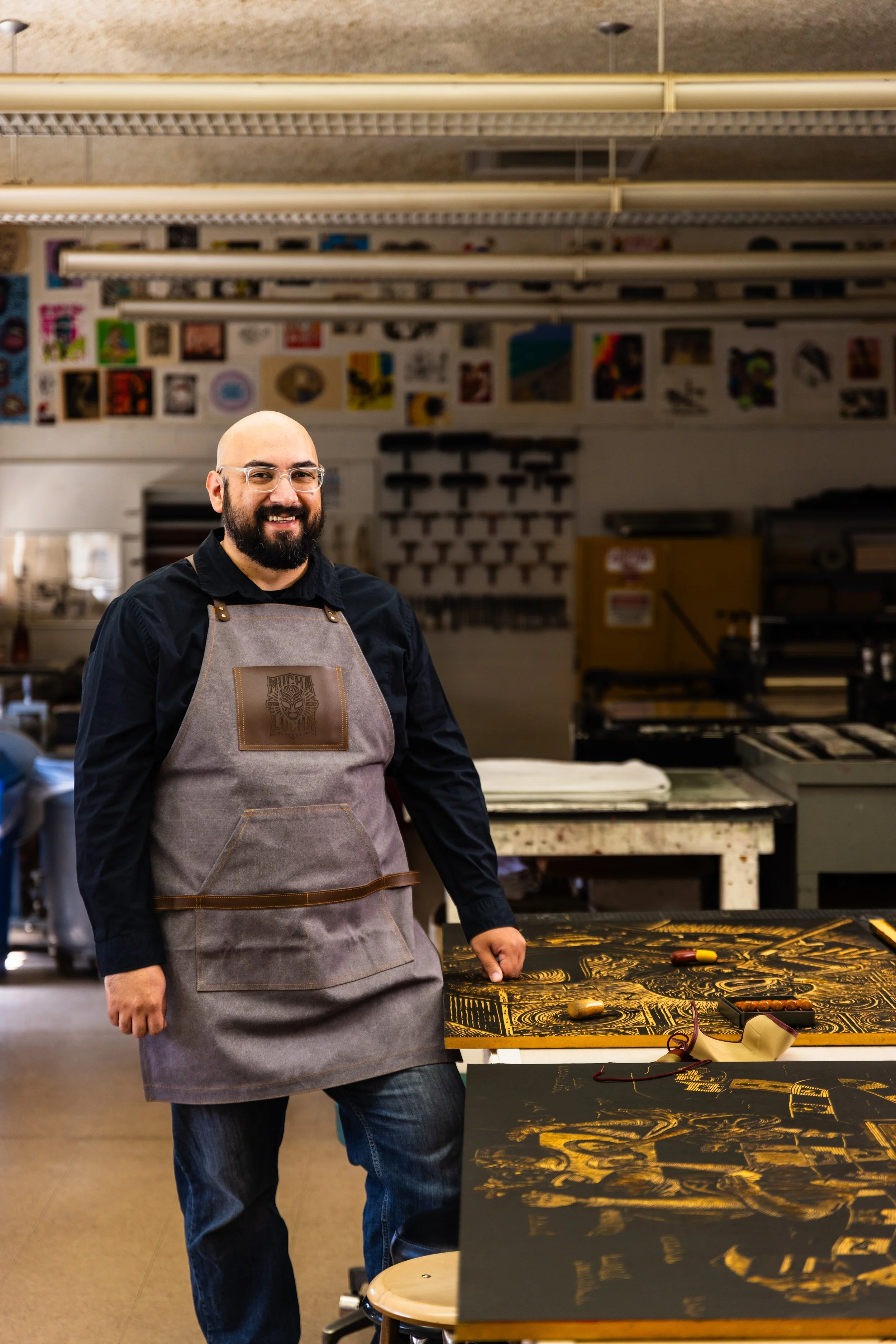 Join Omar Gonzalez for an engaging introduction to the fundamentals of printmaking. Omar will showcase examples of his portfolio that span different mediums and will focus on woodcut and linocut relief printing techniques for the demonstration. He will use an etching press and hand burnishing to pull an impression and also explore the creative use of color using different methods. Other surfaces to print on will be explored such as textiles.