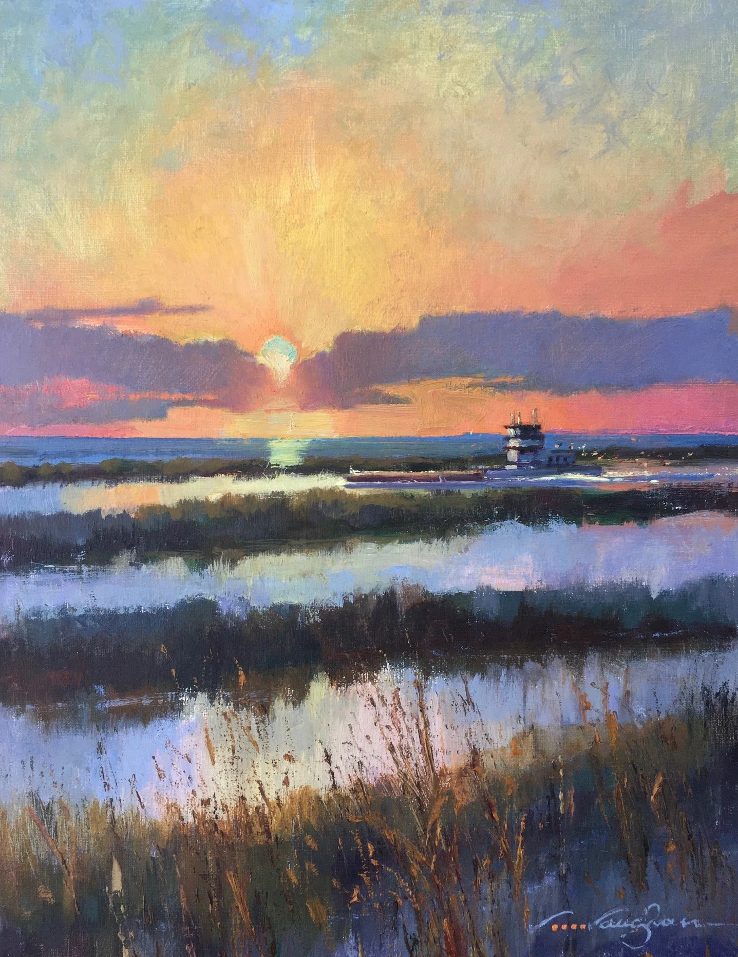 We will primarily work at the “edges of the day,” during the golden hours at sunrise and sunset. At this magical time of year, the full moon rises as the sun sets, and it sets as the sun rises. It’s a fascinating time to paint! Our Texas weather may even permit us to work outside into the dusk hour.