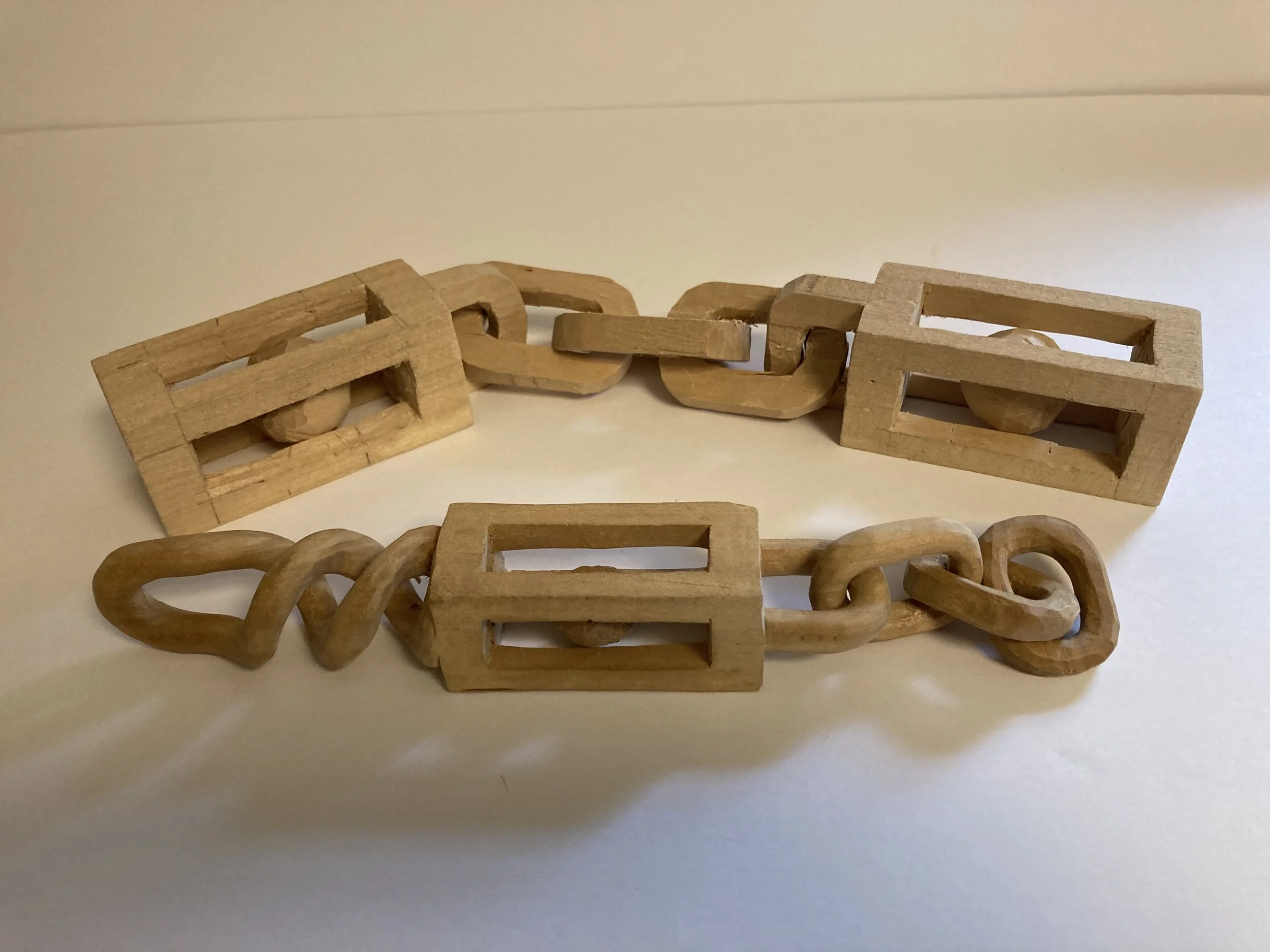 Learn to transform a single stick of wood into one of the articulated items pictured below. It is not as difficult as it looks, if you know the secrets of how it’s done. Learn the basics of wood carving in a one- or two-day seminar. We will supply all the required tools, safety equipment, and wooden blanks. We will show you some of the techniques that can lead you to create whimsical or serious works of art. Give carving a try. It is an art form with rich traditions and many variations.