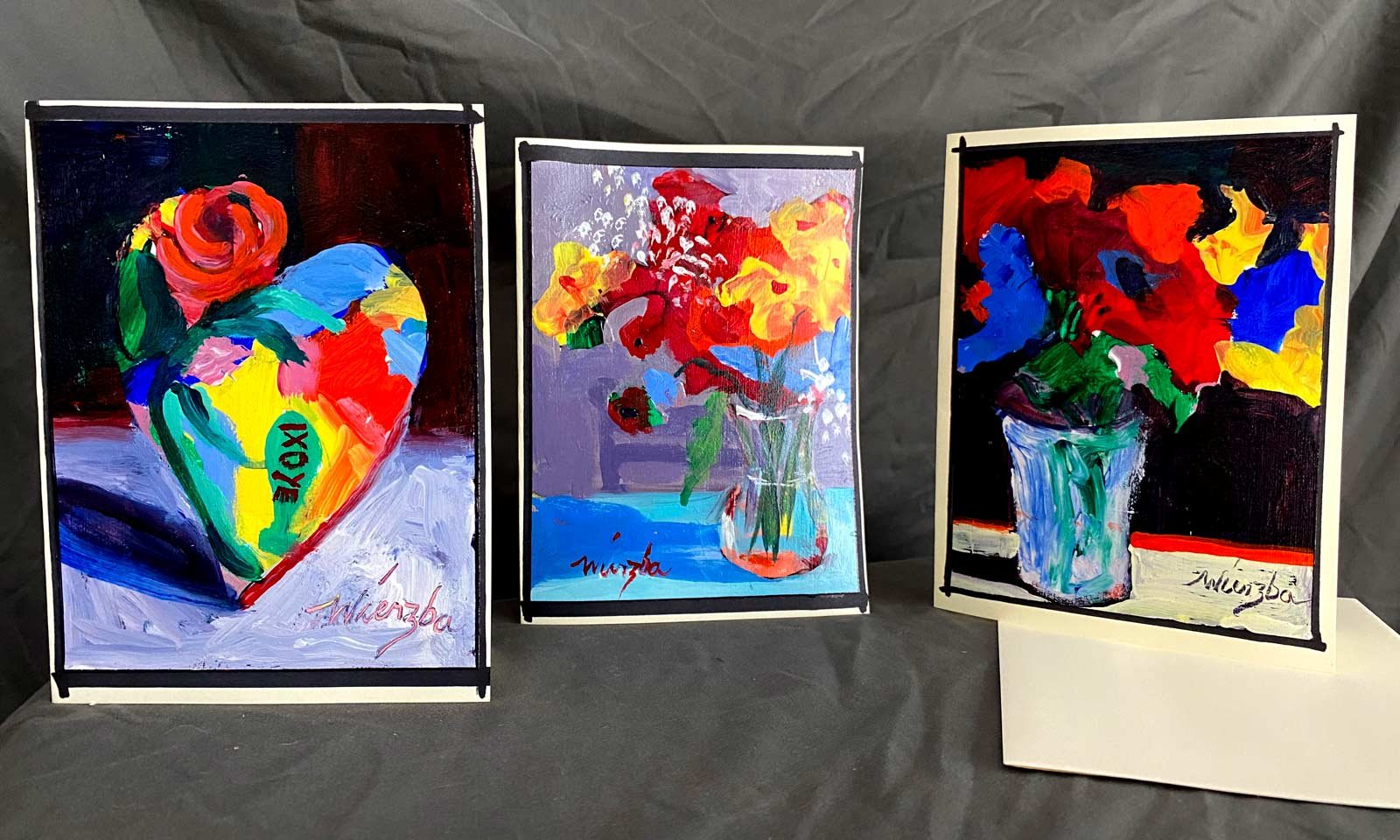 When you need a personal greeting card for any occasion, what is better than one you created yourself? In this class you will create nine 5 x 7 acrylic heart and / or flower paintings that can be cut and glued onto the provided card stock. By painting all the rectangles at the same time you will watch them change and come to a finish together. You will learn about negative painting with the flowers and work with shape, line, color, and value. This will be a fun filled workshop where we learn and experiment together. Hope to see you there!