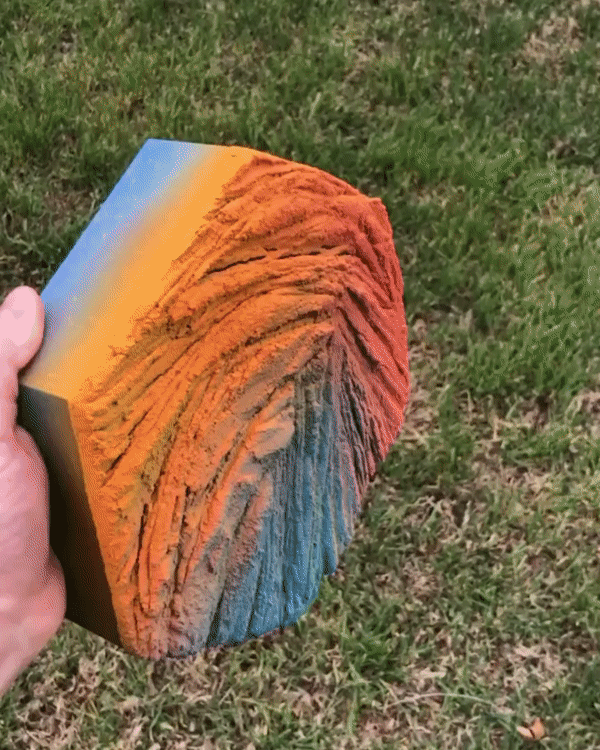 ”The natural surfaces are inspired by what I see in the outdoors from hikes and walks that I frequently go on, and saturated colors that I see in our skies and earth,” McVey said. “The domestic interior patterns are a body of work I call ‘Domestic Artifacts’ that speak to how we curate our lives through swatch books, catalogues, and showrooms like Ikea. I think of both bodies of work not only as trompe-l'oeil style swatch samples, but also as archeological artifacts, much like fragments of past civilizations or periods you see in a museum.”