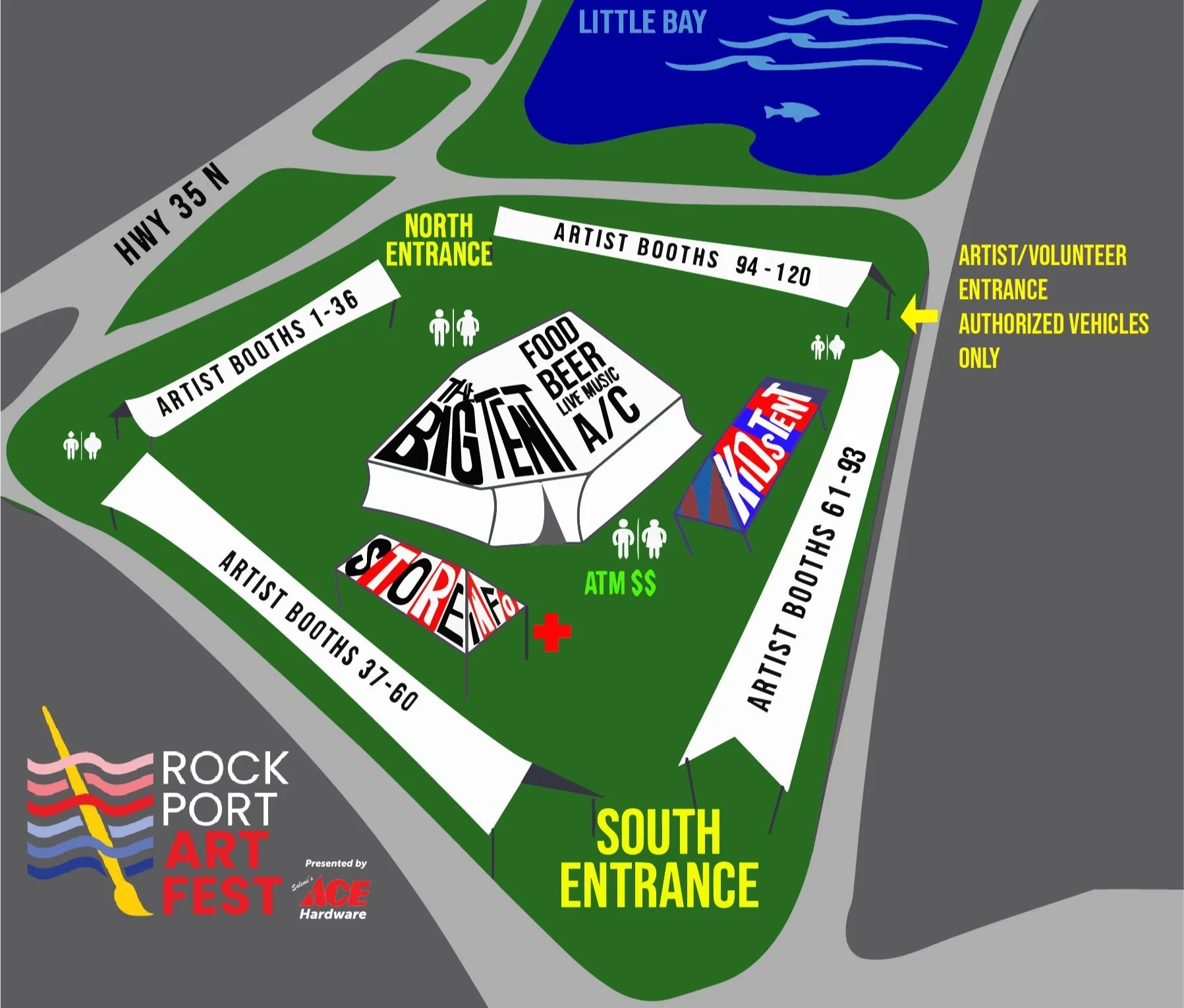 **Festival Grounds can become crowded with vehicles and trailers very quickly. Please follow staff instructions and listen for your booth number to be announced before bringing your vehicle on the grounds. This is about the safety of everyone and simplifies and expedites the haul-out process. Failure to comply can result in not being invited back to the Art Festival.